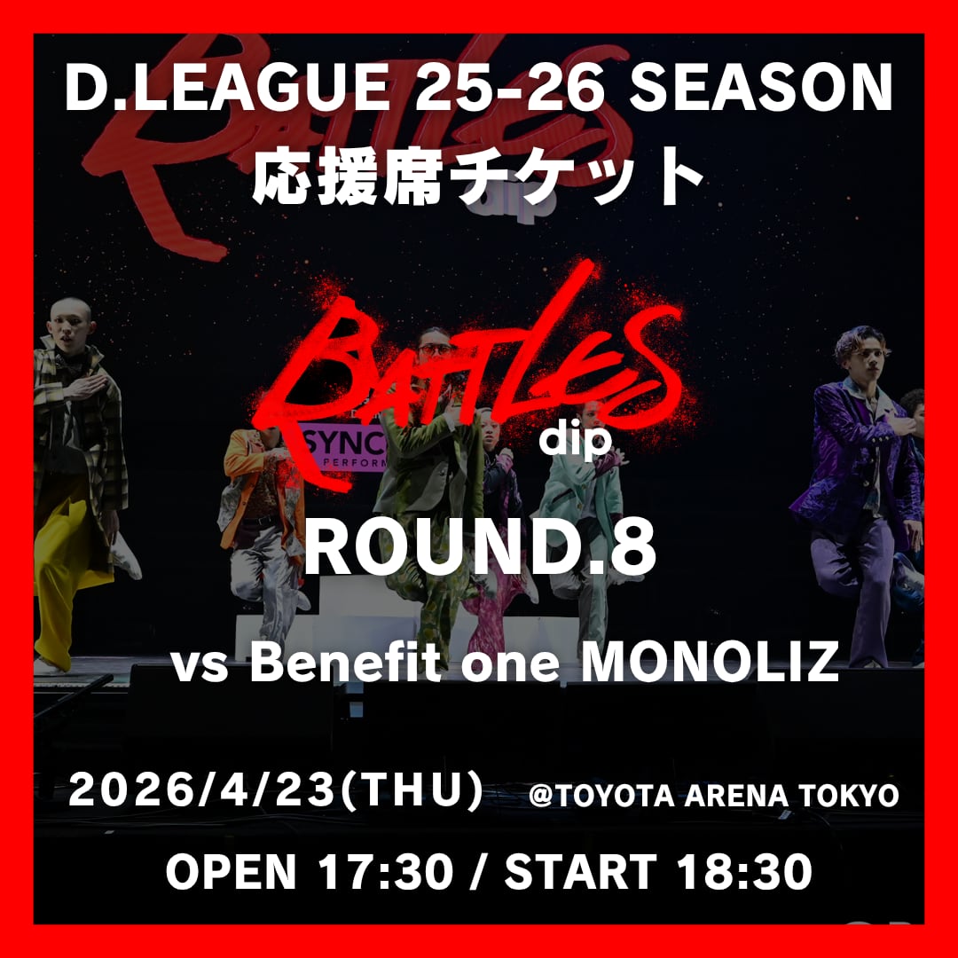 D.LEAGUE 25-26 ROUND.8 のdip BATTLES の応援席のチケットの販売いたします。